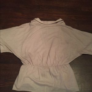 Super soft short jacket. Very light material and really—incredibly soft! A pinky mauve taupe color. Three button closure at waist. Super cute casually with jeans or can dress up for work with a pencil skirt or trousers. Slight pilling and a few pulls but not noticeable on.