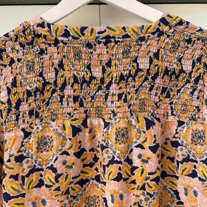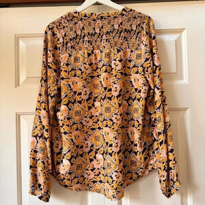 Hinge Smocked Floral V-Neck Long Sleeve Floral Blouse Shirt Women’s size Small