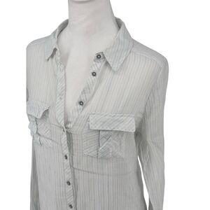 hinge blouse xs, hinge linen shirt, striped button down shirt, cotton linen blouse, casual summer blouse, nordstrom hinge top, breathable women’s shirt, long sleeve pinstripe top, lightweight layering shirt