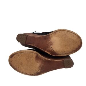 In good condition Hinge Tracer Black Suede with Leather Wooden Wedge Bootie Size 8 Women's.