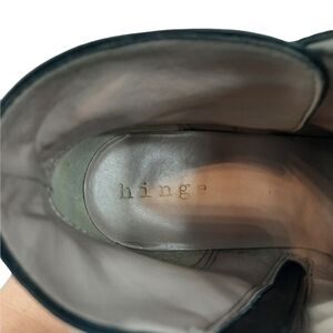 Hinge Tracer Black Suede Leather Wooden Stacked Wedge Ankle Boots Size 8 Women's