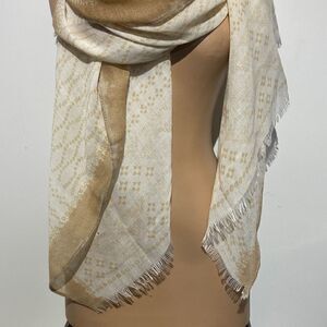 Hinge Unisex Geometric Pattern Fringe Hem Cream / Tan Scarf 33X72