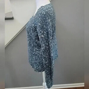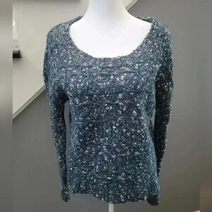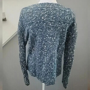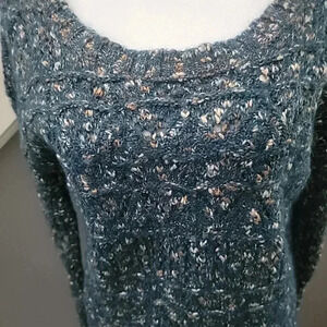 Hinge Woman's L Blue Textured Wide Neck Chunky Knit Sweater Fall Wool Blend