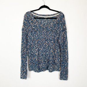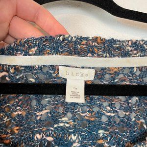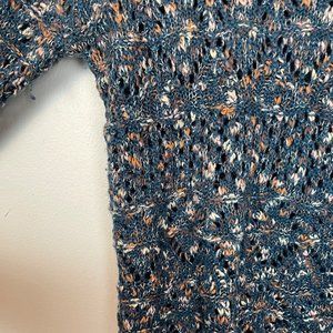 Hinge Woman's M Blue Textured Wide Neck Chunky Knit Fall Sweater Crochet Boho