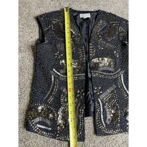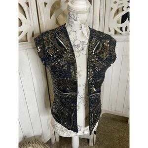 Hinge Womens Sequins Beaded Embellished Sleeveless Vest Metallic Size Small