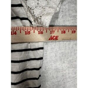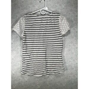 Hinge Women's Small Top Short Sleeve Scoop Neck Lace Sleeves Navy/White Striped