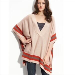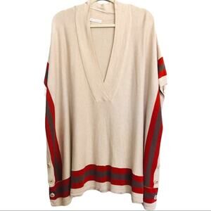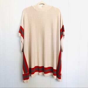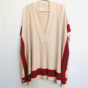 Hinge tan red stripe button oversized poncho vest tunic festival sweater XS