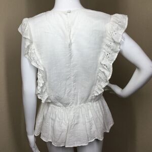 Allover eyelets and lace panels lend playful texture to a breezy top fashioned with frilly ruffles.