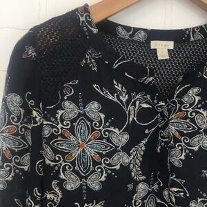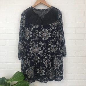 Size Small. Hinge oversized 3/4 sleeve tunic. Crochet detail on shoulders and back. Buttons on front.