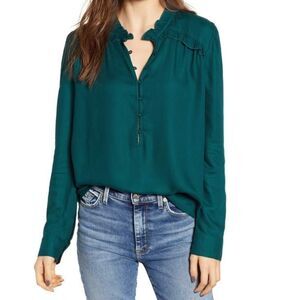 Delighted with feminine frills, this sweet and supple blouse brings undeniable charm to your look.