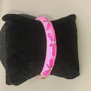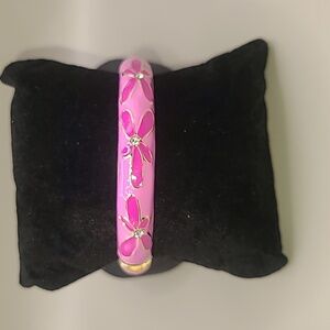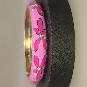 Hinged bangle bracelet pink and gold tone with faux diamonds