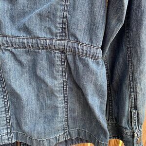 Hinge jacket zip up and snap. Pockets. Waist can cinch in. Size is xs. Measurements are done flat and are approximate.