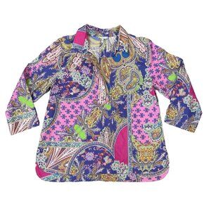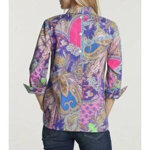 Hinson Wu Aileen 3/4 Sleeve Paisley Printed Shirt Button Back Size 16 $270 NWOT