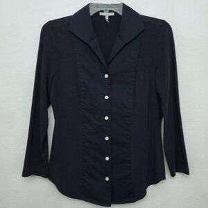 Hinson Wu Donna Long Sleeve Wing Collar Preppy Office Career Button Shirt XS