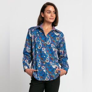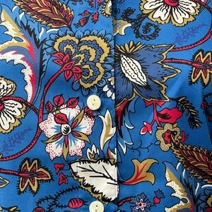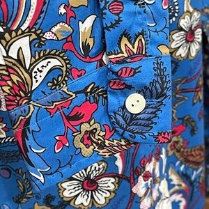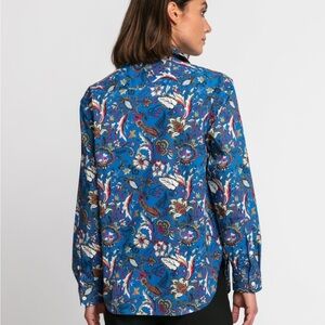 Hinson Wu Jacobean Floral Button Down Shirt Blue Multi-Color Long Sleeve | XS
