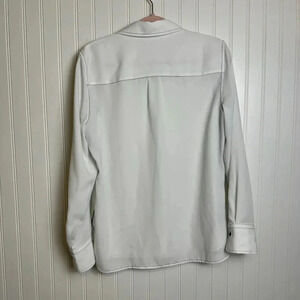 Hinson Wu white button front blouse contrasting thread semi-sheer long sleeve