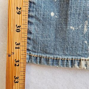 The Hint Jeans Women Sz 1 Blue Boot Cut Bleach Splatter Look Y2K Festival Hippie New is a stylish pair of denim jeans featuring a unique bleach splash look, giving off a festival, hippie, or peasant vibe. These low-rise bootcut jeans have a comfortable and stretchy fit, perfect for all seasons. With a 5-pocket design, zip and button closure, and easy care instructions, these jeans by HiNT are a trendy and versatile addition to any woman's wardrobe.