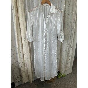 Hint Of Blush NWT Sheer Longline Mother Of Pearl Button Down Tab Sleeves Duster S
