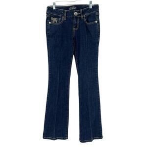 Hint Y2K Low Rise Dark Wash Bootcut Jeans Junior’s Size 5 Embroidered Pockets