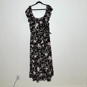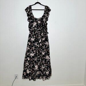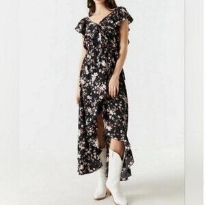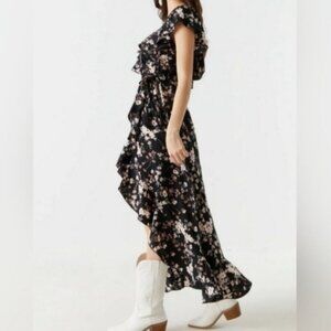 Hint of Blush Black Floral Ruffle High Low Maxi Dress Size 3X NEW