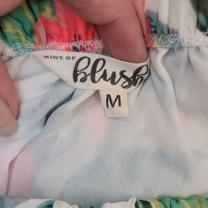 The Hint of Blush Women's Floral Dress is a charming and stylish option for casual occasions during the summer and spring seasons. With an off-shoulder and 3/4 bell sleeve design, this dress features a vibrant floral pattern in a multicolor palette. Made of lightweight polyester material, it has an elastic waist for comfort and convenience. The ruffle accents and fit & flare style add a touch of elegance to this short dress, making it a perfect choice for a day out or a special event.