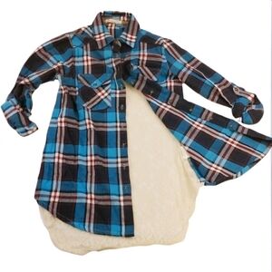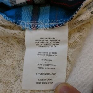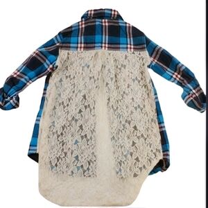 Hint of Mint Plaid Flannel and Floral Lace Button Up Roll Sleeve Size Small