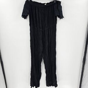 Hint of blush black jumpsuit jumper romper xl lace off shoulder