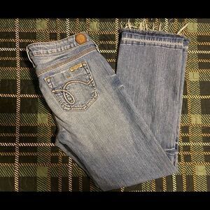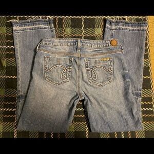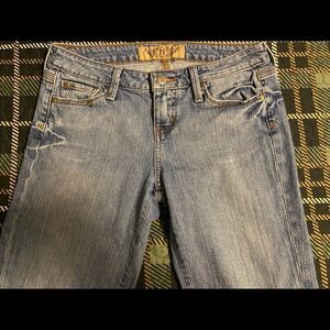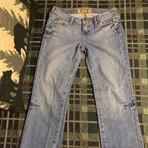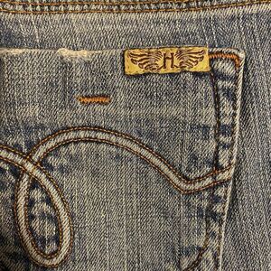 Cute Hint blue jeans. Super cute wearing in all the right spots. In good condition and comfy. Size 3.