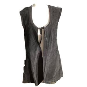 This Hip women’s black leather vest in size Large adds a bold, versatile touch to any outfit. Crafted from 100% genuine leather, it features a soft suede texture, an open-front design with a single tie closure, and a flattering longline silhouette. Perfect for layering over tops, dresses, or festival looks, this vest blends edgy style with effortless comfort.