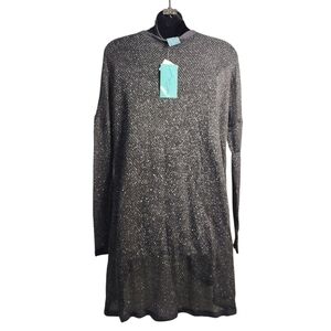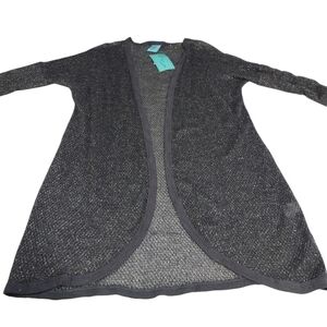H.i.p. Cardigan Women's Gray Silver Metallic Open Front Sweater Sz L NWT
