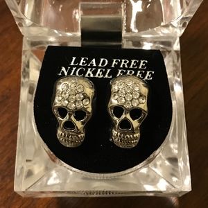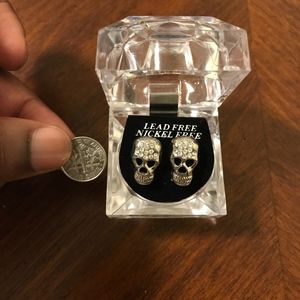 Ships within 24 hours! New in original case! Color: Silver Plated Rhinestone / Metal / Skull Shaped / 0.75” x 0.5” Earring / 1.8" Box Weight 0.10lbs Search: fashion, jewelry, unisex, women's, diamonds, stones, crystal, CZ, cubic zirconia, bones, Halloween, urban, Bling, Iced, out, rap, face, head