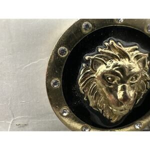 Hip Hop Gold Lion Head Pendant 1 1/4” Gold Color with cubic zirconia diamonds