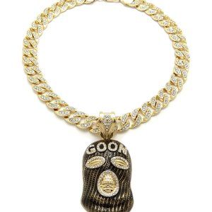 Hip Hop Iced Goon Mask Pendant with Cuban Chain