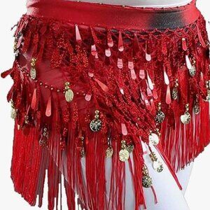 🆕️ Hip Scarf with Tassels Sequins, Triangle Coins Wrap Skirt NWOT