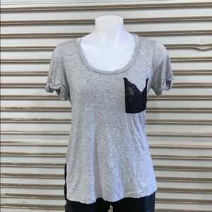 H.i.p. Grey with black lace top size medium 96% viscose 4% spandex Arm pit to arm pit 18” Shoulder to hem 24” 0002