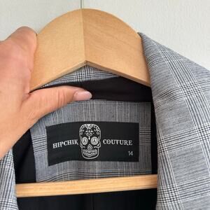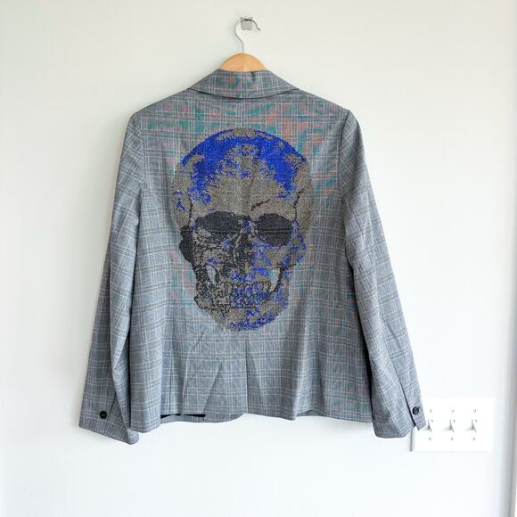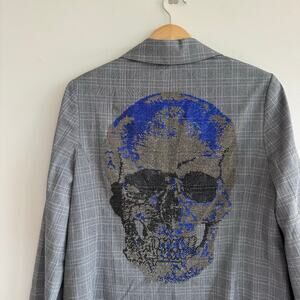 Hipchik Couture Beaded Blue Skull Plaid Single-Breasted Blazer Gray 14