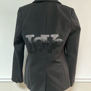 Hipchik Couture Ombre “LOVE” Black Blazer, This long-sleeve blazer features intricate studded detailing, adding a touch of edge to its classic black hue.