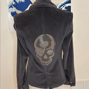 Hipchik Couture Rhinestone Dark Gray Skull Blazer – Size 8 NWT