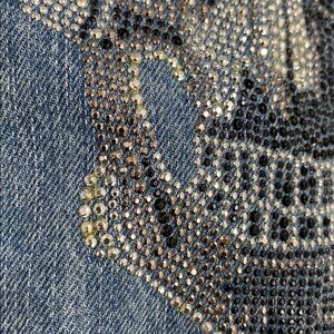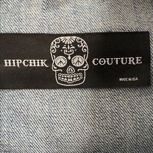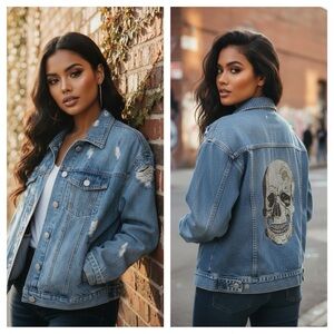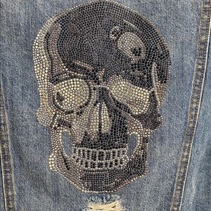 Hipchik Couture Skull Crystal Distressed Blue Denim Jacket Cotton Casual Size Medium