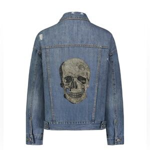 Hipchik Couture Skull Crystal Distressed Blue Denim Jacket Cotton Casual Size M