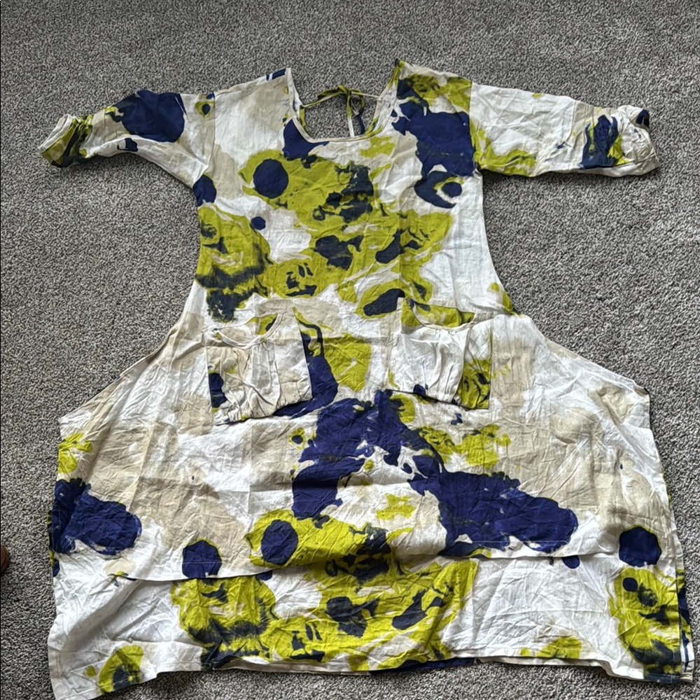 Explore your style with this abstract print dress, featuring vibrant blue and green hues. Perfect for any occasion.