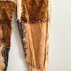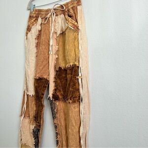 Warm earthy rust toned patchwork jogger pants.