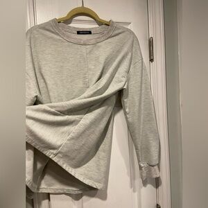 Hippie Chic Size S Gray Long Sleeve Twist Front Crew Neck Pullover Sweatshirt