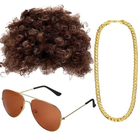 🧿Package includes: the package includes 1 pack brown jumbo funky Afro wig, 1 pair disco gold celebrity sunglasses, 1 piece faux gold chain necklace, very suitable for you while attending some theme cosplay party