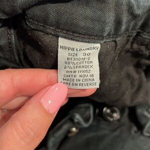 Hippie Laundry Mid Rise Midi Black Distressed Jean Shorts, Size 30