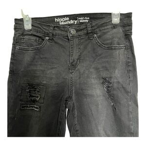 Hippie Laundry Womens Jeans Mid Rise Distressed Skinny Size 7 Black Stretch