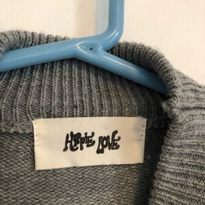 Hippie Love Contrast Sweater. Gray knit mock neck top with contrasting white shirt. Size small