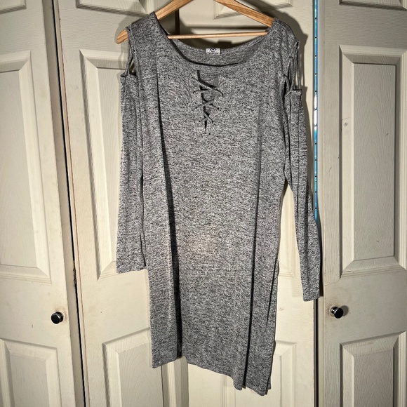 Hippie Ohio Heather Gray Top with Cross Tie and Shoulder Cutouts Size XL Great Condition