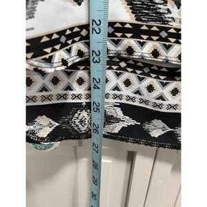 Hippie Rose Aztec Chiffon Zip Back Blouse Size Small Short Sleeve Blk/Tan Boho