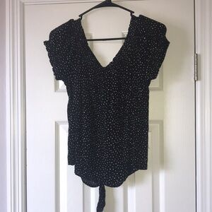 Hippie Rose Black With White Dots Tie At Waist Short Sleeve Top Size Junior XL